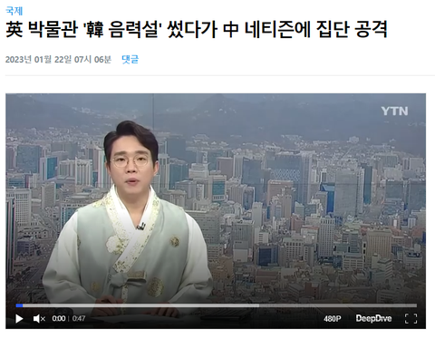 다니엘 차이니스 뉴이어 발언 후 사과 -> 중국 주요신문 및 포털 기사화 ->