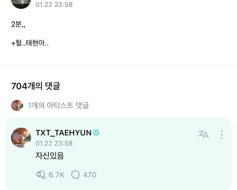 하라메 뜨기 2분 전 위버스와서 자신있다고 이야기 하고 간 텨니