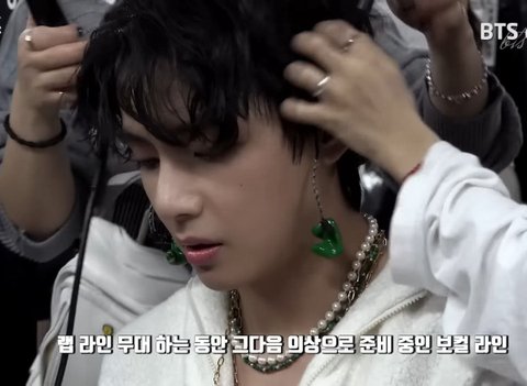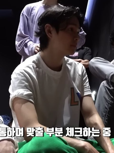대기실에서 쌩얼로 멤버 얘기 경청 중