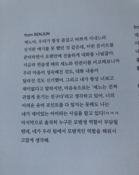 런쥔이가 제노랑 재민이한테 쓴 글