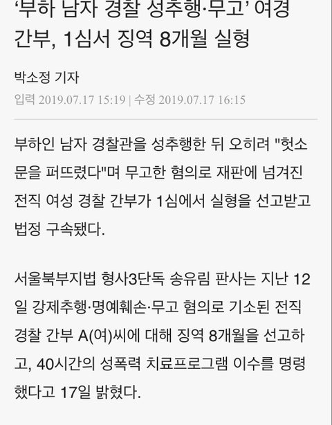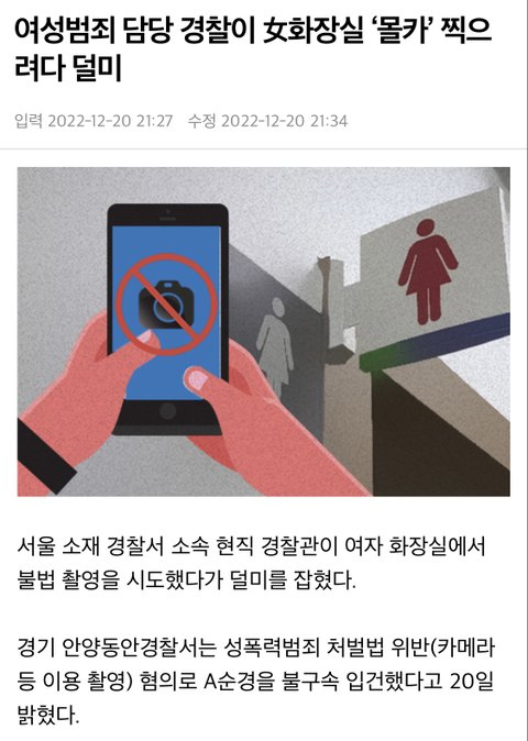 여경은 성폭력 무고, 남경은 몰카ㅋㅋㅋ 물론 좋은 경찰 형사분들도 많지만 정말 왜 하필 경찰 하겠다고 해서 세상을 더 안좋에 만드나 싶은 사람들도 있네요