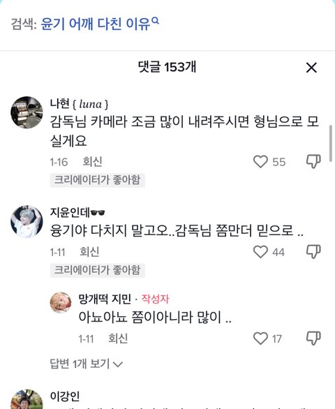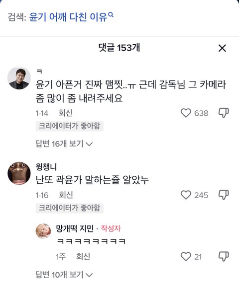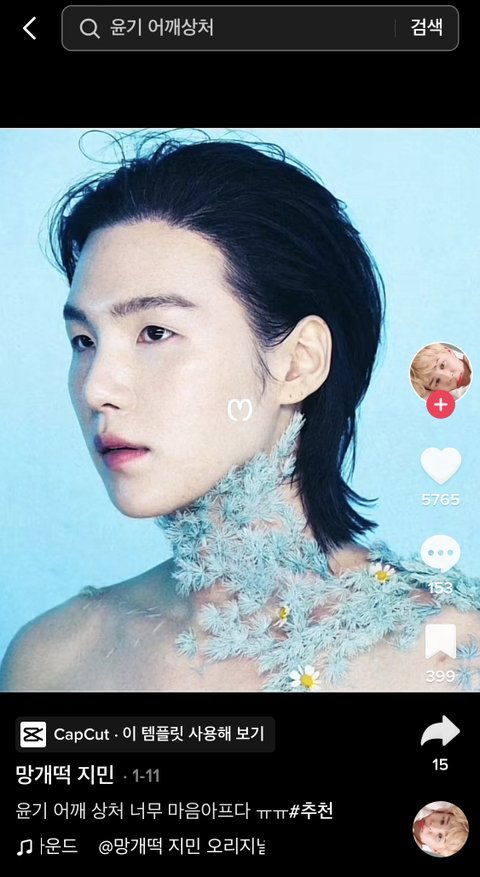 틱톡에 슈가 어깨 상처 마음 아프다는 글 올라옴