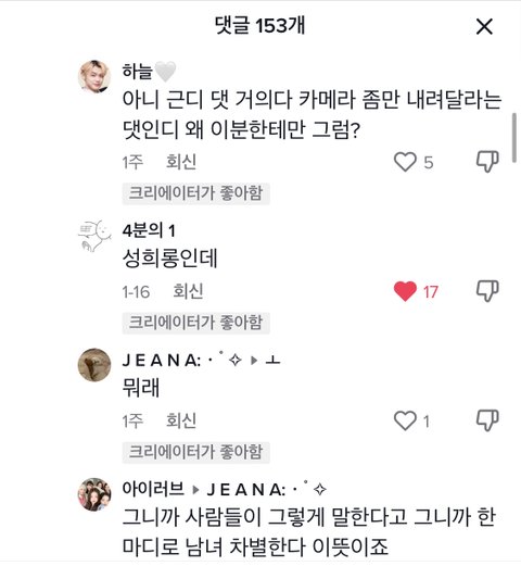성희롱 아니냐는 댓글에