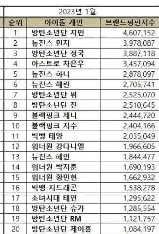 남녀 통합 브랜드평가 떴다