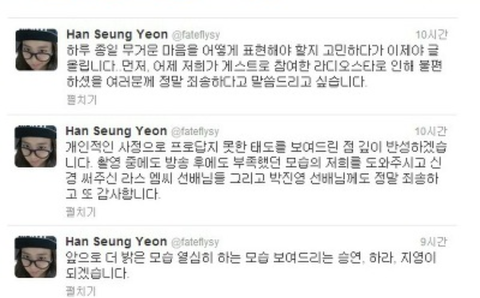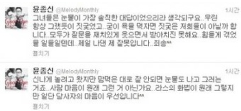 윤종신도 sns에 카라에게 사과하는 글을 올렸지만