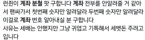 재민이가 자기는 계좌번호 한 자리도 안 알려줄거라고 버블 옴,,,