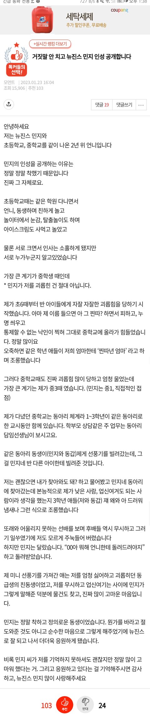 이 민지에 관한 글 말하는게 아니고 이런 류의 미담