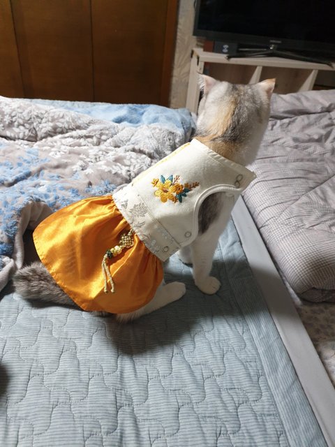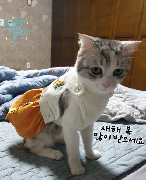 르블랑이의 집사입니다. 명절을 세느라 이제야 냥이 구정 빔으로 새해인사 드려요~