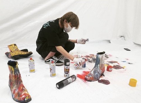 지디가 직접 디자인했고 신을때마다 크랙이 긁혀서 검은색 표피 안에 있는 색깔이 나오는게 특징