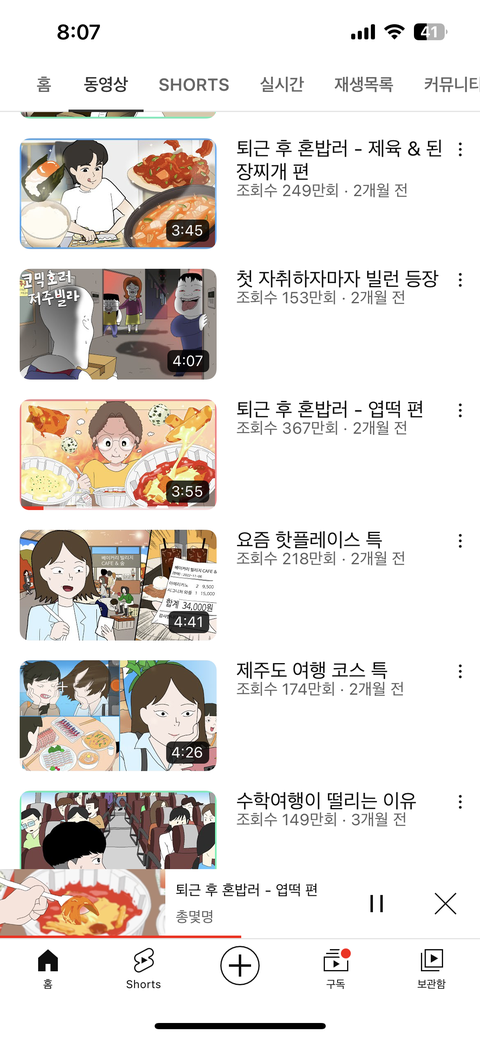 걍 스튜디오 같은 데서 방송국마냥 작정하고 만드는 연옌 나오고 하는 영상들도 100만 넘으면 조회수 잘 나왔다고 좋아하는데 이 사람은 뭐 지금이야 직원들 있겠다만은 혼자 그림하나로 시작해서 캐릭터랑 스토리 다 짜내고 유튭 시작한지 꽤됐는데 영상 싹다 100만 넘음 ㄷㄷ 대박이다