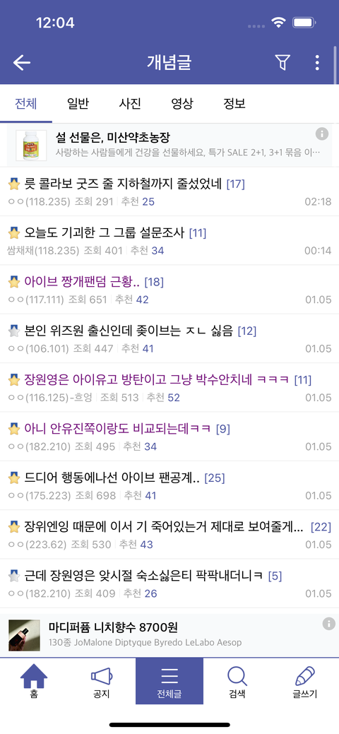 개념글 그냥 아이브 뉴진스 까질 릇은 찬양글로 도배 해놓음