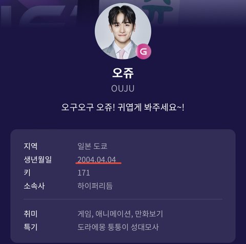 오쥬라는 연습생 생일이