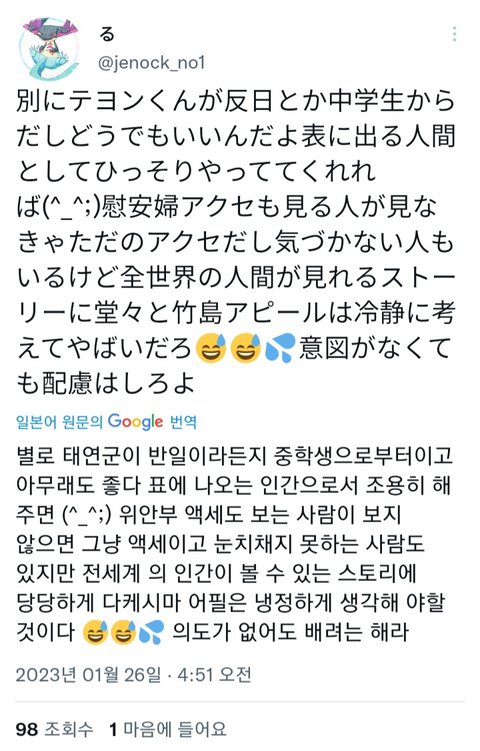 인스타 스토리에 독도 영토 표시된 지도 찍어서 올렸다고 ㅋㅋㅋ ㅅㅂ