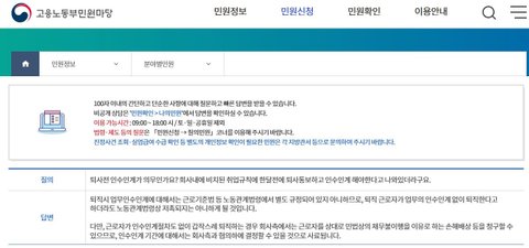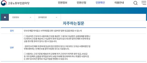 인수인계에 대해서도 고용노동부에서는 당연히 지커야 할 의무나 철칙은 아니라는 입장입니다.