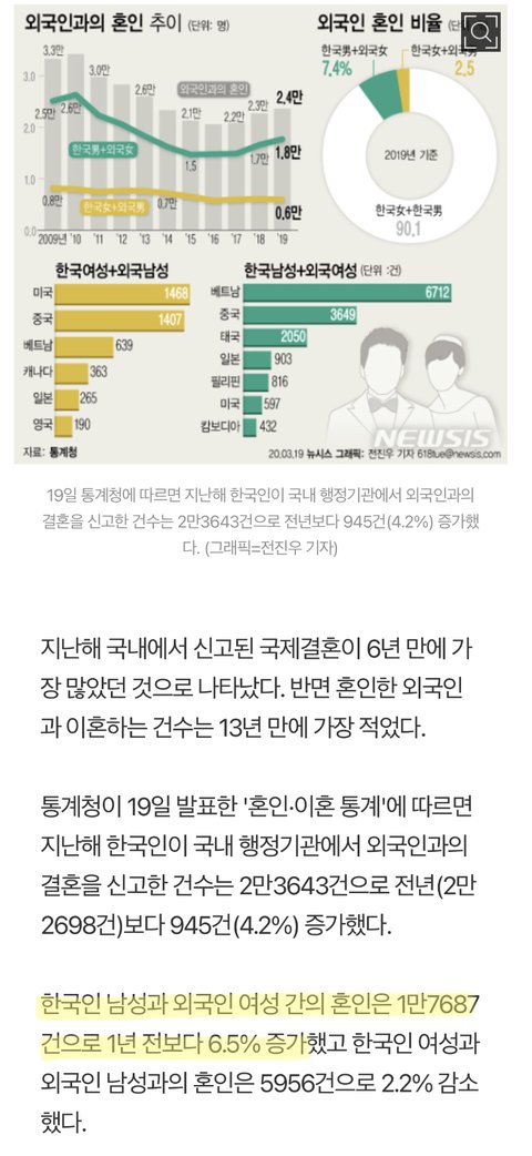 한국 남자의 국제결혼 비율이 증가했다는 위의
