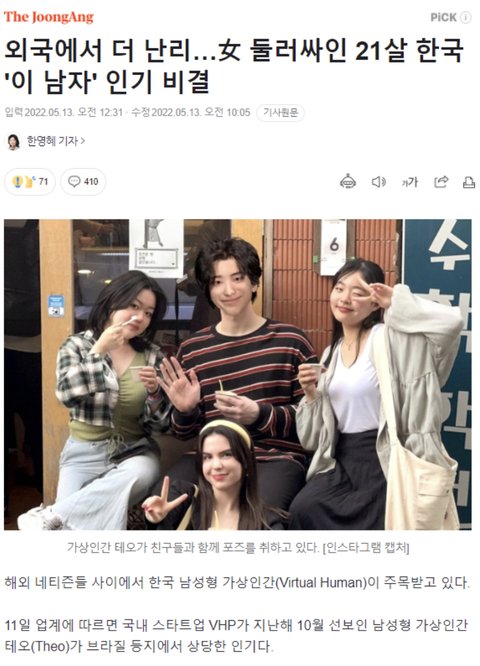 + 한국 남자라면 가상인간(Virtual Human)도 인기가 있음
