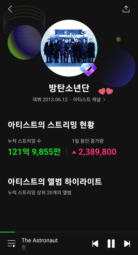ㅈㄴ 킹탄임 ㅅㅂ 100억회 넘는 가수 방탄밖에 없대 그러니까 스밍하자!!