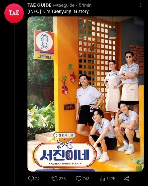 방탄소년단 뷔..많이 힘들었던 거 같은 '서진이네' 촬영 (인스타스토리)