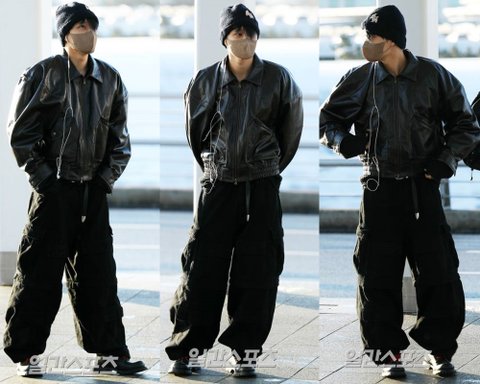 디테일 많은 블랙 벙벙핏에 줄이어폰 귀여운 비니