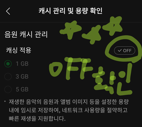 ★설정-캐시설정에서 캐시 off 확인★