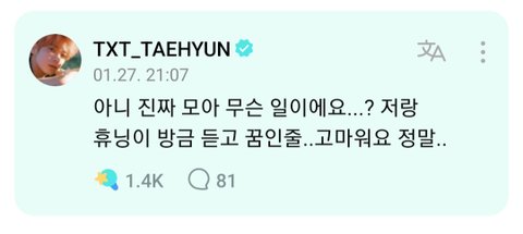 태현이 휴닝이 꿈인 줄 알았대ㅜㅜ