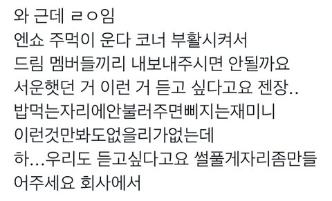 드림이들 주먹이 운다 보고싶지 않아???ㅠㅠ