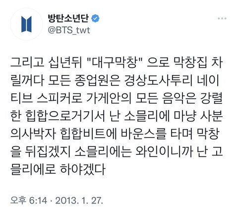 2013년 1월 27일에 민윤기가 올린 트윗임.
