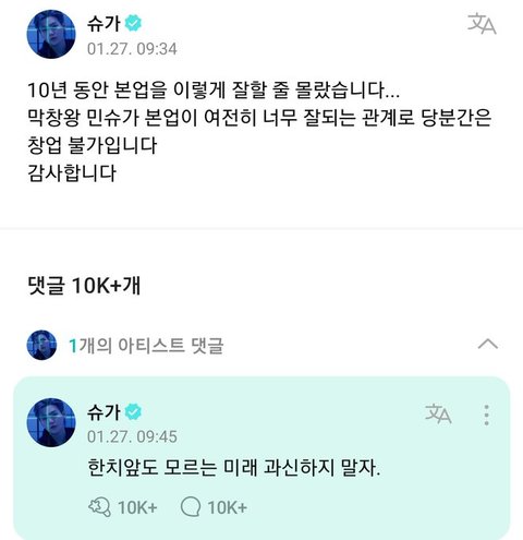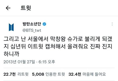 방탄 슈가 관련된 글임.