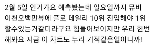 1위 하려면 뮤비 조회수 2500만회는 넘어야한대