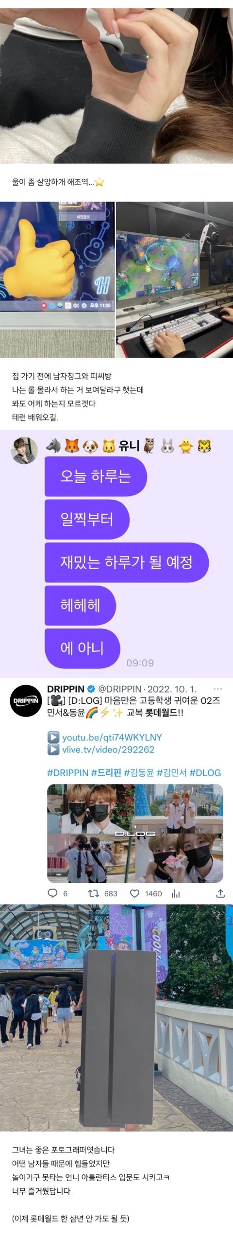 롯데월드 브이로그 찍기 전에 프메로 팬들한테 재밌는 하루가 될 예정이다 이러더니 알고보니까 브이로그 찍으면서 카메라 뒤에선 더블 데이트 ㅋㅋ