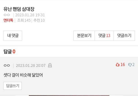 쓰니 혼자 글쓰고 댓글 쓰고 바쁘노 먹금해