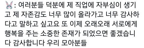 왜 울었냐면 새해 목표 말할 때 여러분들 덕분에 자기가 행복했던 거 처럼 모아분들도 행복하게 해드리고 싶다고 이야기 하다가 울더라... 다행히 슬퍼서가 아니라 너무 행복해서 운 거래