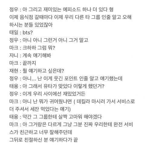 선배그룹이라고 착각하는 상대에게 그 그룹인척 서비스로 데킬라 3잔받아먹었다고 자랑하는 마크 ㅋㅋㅋㅋㅋㅋ