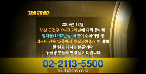 그것이알고싶다 여고생 정다금양 추락 사망 사건 제보 받기 시작