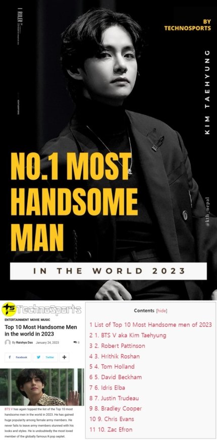 방탄소년단(BTS) 뷔가 할리우드 스타들을 누르고 '2023년 세계에서 가장 잘생긴 남자'로 선정되며 K팝 대표 미남 위상을 빛냈다.