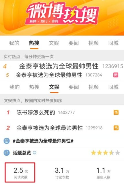 뷔의 세계 최고 미남 선정 소식은 중국 최대 SNS 웨이보에서 뷔의 이름은 실시간 검색어 최상단을 장식하는 등 중국에서도 화제를 모았다.