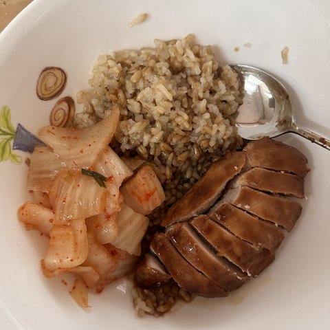 점심으로 곤약밥 닭가슴살 김치김 230칼 이렇게 먹고