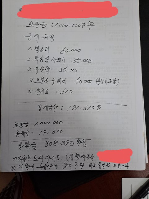 물론 나머지 받은 상태이지만요 근데 너무 억울한게 보일러 수리비 (보일러 수리비는 정말 아무리 고장을 냈더라고도 해도요 물이 새는데 저희가 관리 못하고 사용해서 저희보고 보증금에서 깐거라고합니다)