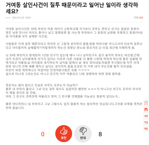 거여동 살인사건이 질투 때문이라고 일어난 일이라 생각하세요?