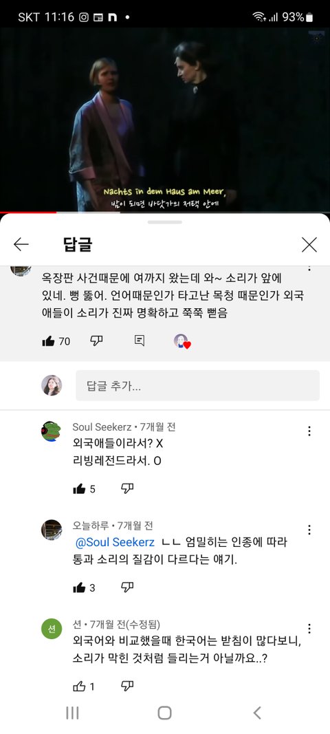외국인들 노래 들어보면 뭔가 소리 질감?이 다르달까