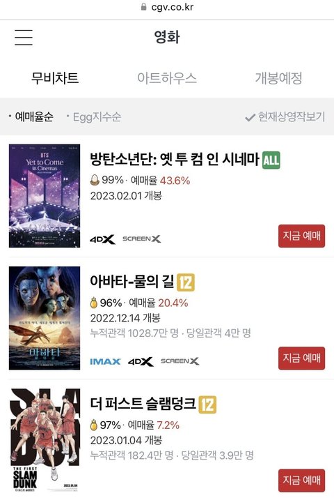 와 방탄 영화 예매율 1위네