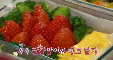 딸기는 꼭지 다 따서 잘라져있고 반으로도 잘라져 있어.. 세심해