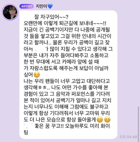 에스파 떡밥 ㅈ도없어서 다른 호감그룹 자컨 보면서 맘을 달래려고 했는데 보면서도 에스파도 이런 자컨 나오면 재밌을텐데.... 에스파도 이런 커버영상 올라오면 참 좋겠다.... 이런 잡생각이 머리를 떠나지 않음. 그리고 애들이 항상 올해는 더 자주보자. 앞으로 나올거 정말 많다고 해서 좀만 버티면 될거같아서 스스로 희망고문중임.. ㅜ 컴백 2월인줄 알았는데 3월로 또 밀린거같아 ㅆㅣ앙 ㅜㅜ 에스파 신곡 듣고싶다.... 콜라보 말고 4명 목소리로 구성된 에스파 신곡....