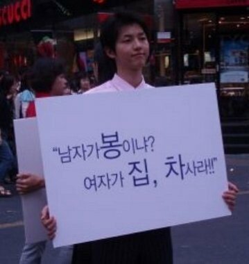 송중기 근데 이말 진지하게 생각해보면 말이 앞뒤가 안 맞는 것 같지않음? 집, 차 사는게 봉이라면서 보통은 그럼 여자도 반반 부담해라 이러잖음 근데 얜 대놓고 여자한테만 다 사라고 하고있음 차라리 반반결혼 하자 이런 피켓 들고 서있지