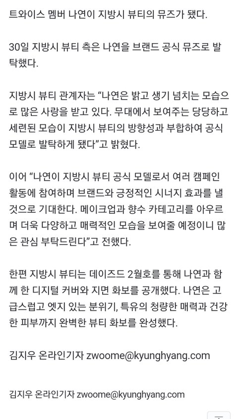 뭔가 데뷔초 나연이었으면 안어울렸을 것 같은데 지금은 전보다 분위기가 성숙하고 세련된 느낌으로 바뀐 것 같아서 은근 잘어울리네