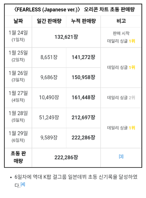 역대 kpop 걸그룹 일본 데뷔 앨범 초동 1위 달성 초동 222286장 ㄷㄷ