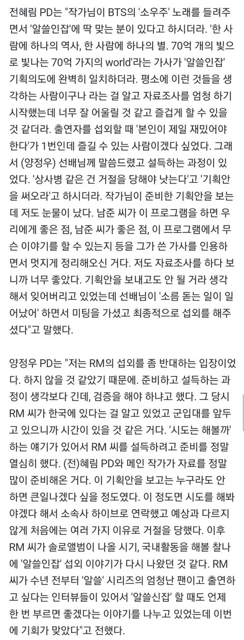 다이렉트로 섭외하는거 아니면 방탄 스케줄 다 회사가 막구나