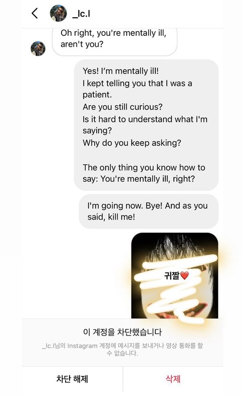 쟤가 먼저 나 차단해서 저러고 끝남 ㅋㅋㅋㅋㅋ