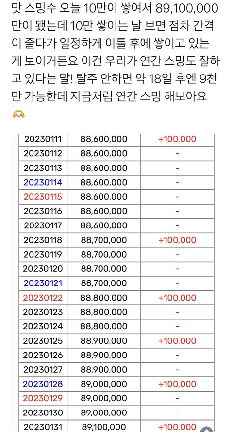 오늘 10만 쌓였다넹 꾸준히 해부자