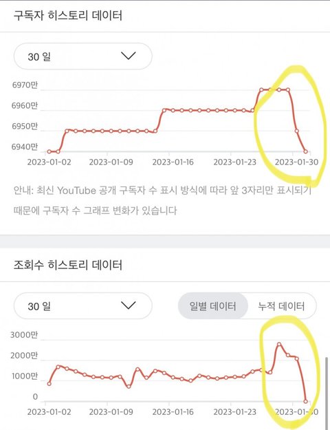 보통 유투버들 구독자수 몇십만 정도 빠지면